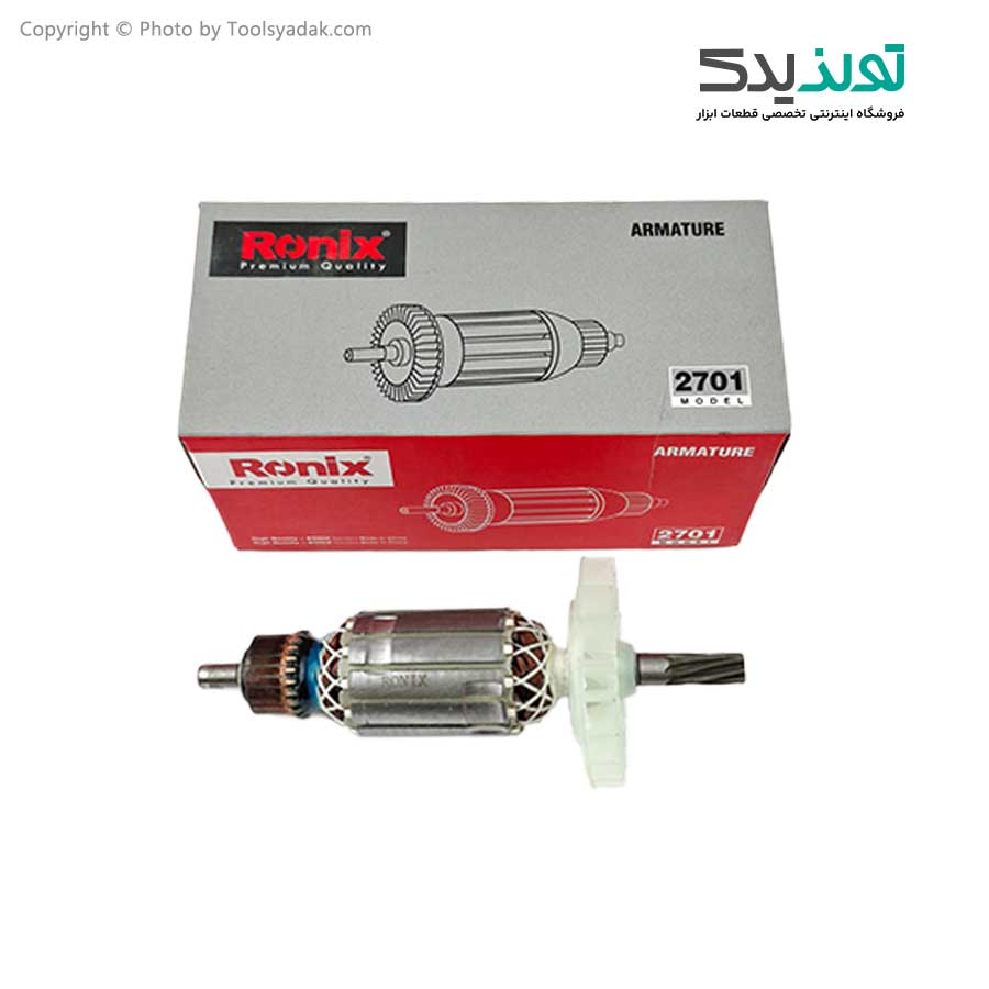 در ماشینهای جریان مستقیم قسمتی که انرژی پتانسیل الکتریکی را به انرژی جنبشی و حرکتی تبدیل می کند اصطلاحا آرمیچر گفته میشود که این انرژی جنبشی و حرکتی خود بوسیله و یا عبور یک جریان از سیم پیج موتور در یک میدان مغناطیسی حرکت چرخشی ایجاد مینماید. آرمیچر دریل بتن کن رونیکس مدل 2701 دارای ولتاژ 220 ولت، سیم پیچ تمام مسی و مناسب مدلهای مشابه نیز می باشد.