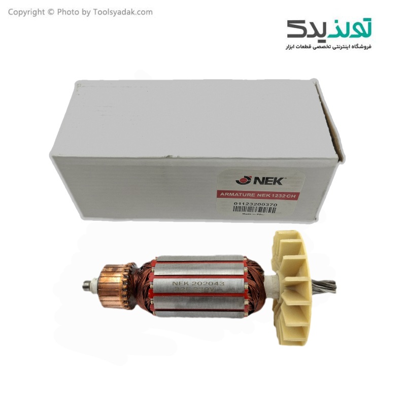 آرمیچر فابریک دریل بتن کن نک مدل 1232 دارای طراحی ویژه ساخته شده از شفت فولادی فورج و سیم پیچ مس با بالانس دقیق میباشد، همچنین لازم به ذکر است که این قطعه فابریک این دستگاه است.