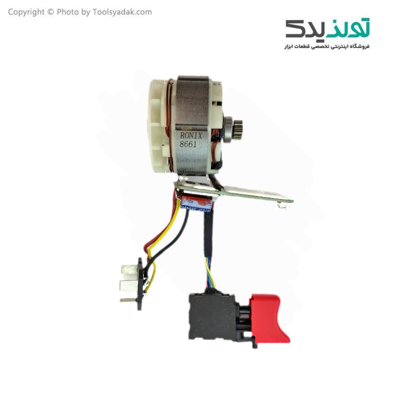 کلید و بورد و موتور کامل دریل شارژی چکشی براشلس (بدون زغال) 16 ولت رونیکس مدل 8661 مجهز به دیمر برای تنظیم سرعت دستگاه در دو حالت بیشترین و کمترین سرعت و قدرت میباشد. همچنین لازم به ذکر است این قطعه اصلی و فابریک این دستگاه است که میتوان در دستگاههای مشابه با برندهای دیگر هم بکار برد.