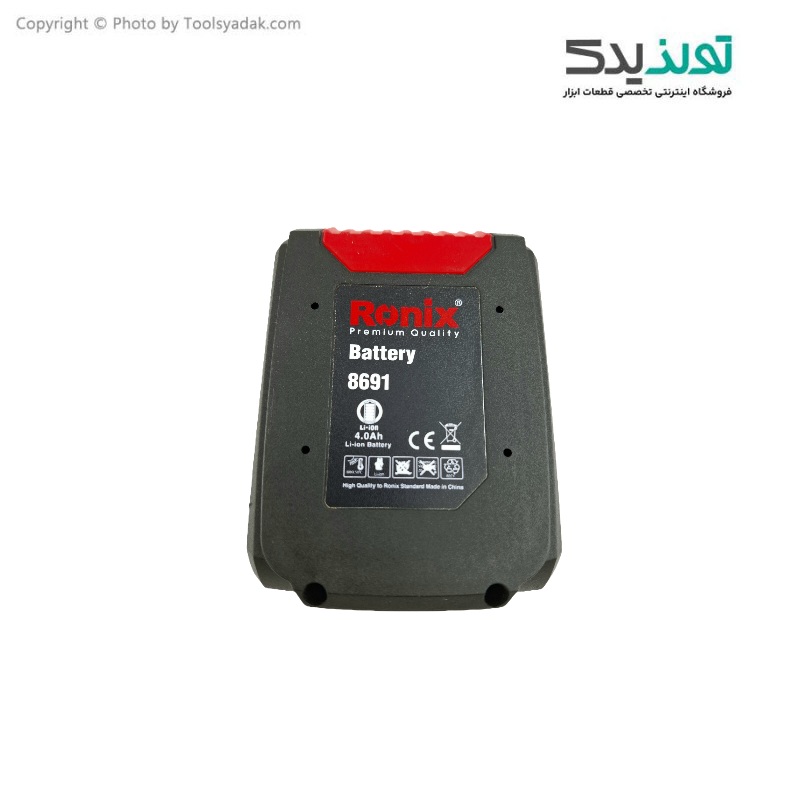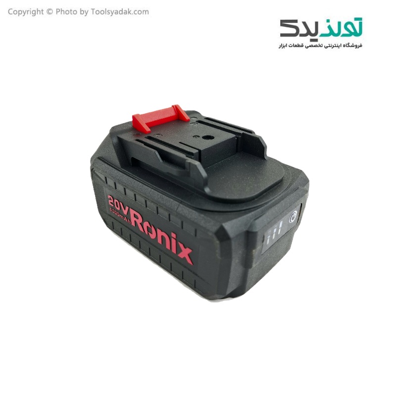 باتری لیتیوم یون 20 ولت 4 آمپر ساعت رونیکس مدل 8691 از خانواده باتری های قابل شارژ است که در زمان واحد، تخلیه یون های لیتیوم از الکترود منفی به سمت الکترود مثبت و در هنگام شارژ شدن وارونه حرکت می کند، این باتری ها بالاترین چگالی انرژی را دارد. ولتاژ این باتری 20 ولت می باشد. لازم به ذکر است این باتری مجهز به چراغ LED نشانگر میزان شارژ باتری نیز است.